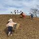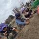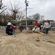 ボランティアの高校生が 焼けた見晴らしを修復するための