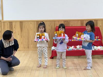 待ちに待った3月です 私と僕の番がやってきました! オープニングはチポリーノ組のお人形さん達から おめでとう!