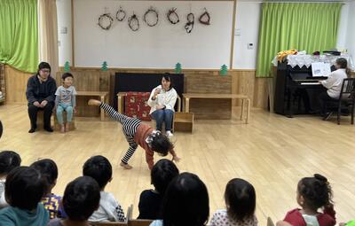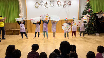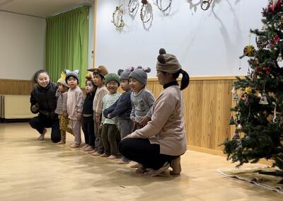 チポリーノ組の お兄さんお姉さんからは 可愛い人形劇のお祝いがありました 「だるまさんがころんだ」が 可愛かった ありがとう!