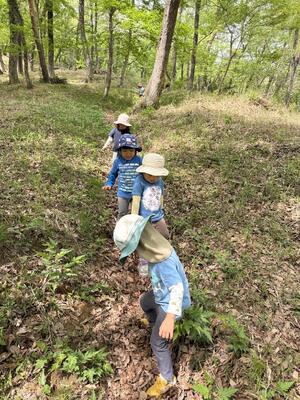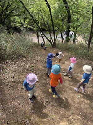 落ち葉がすべる すべる 「カニさんみたいに横歩きするといいよ」と言うと 指もチョキ✌️出して 可愛いこども達でしたよ