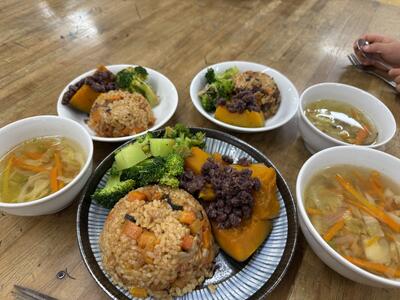 皆んなにお知らせして 今日のおやつのおにぎりは 自分で握るよ〜