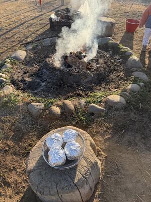 みんなドキドキ 炊けたかな? 火加減と時間をみて 一升と半カップの新米が炊けたよ〜!