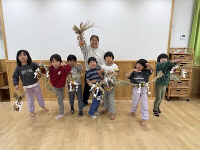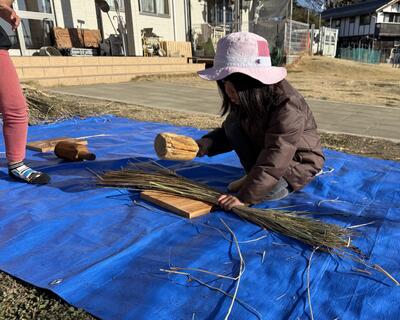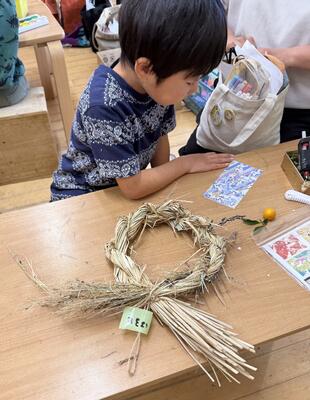 そして恒例 稲刈りをした藁で しめ縄飾りを作りました