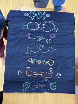 自分でデザインして ひと針ひと針縫いました チェーンステッチ 頑張ったね