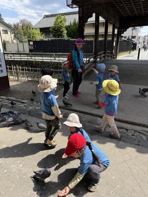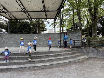 落ち葉がすべる すべる 「カニさんみたいに横歩きするといいよ」と言うと 指もチョキ✌️出して 可愛いこども達でしたよ